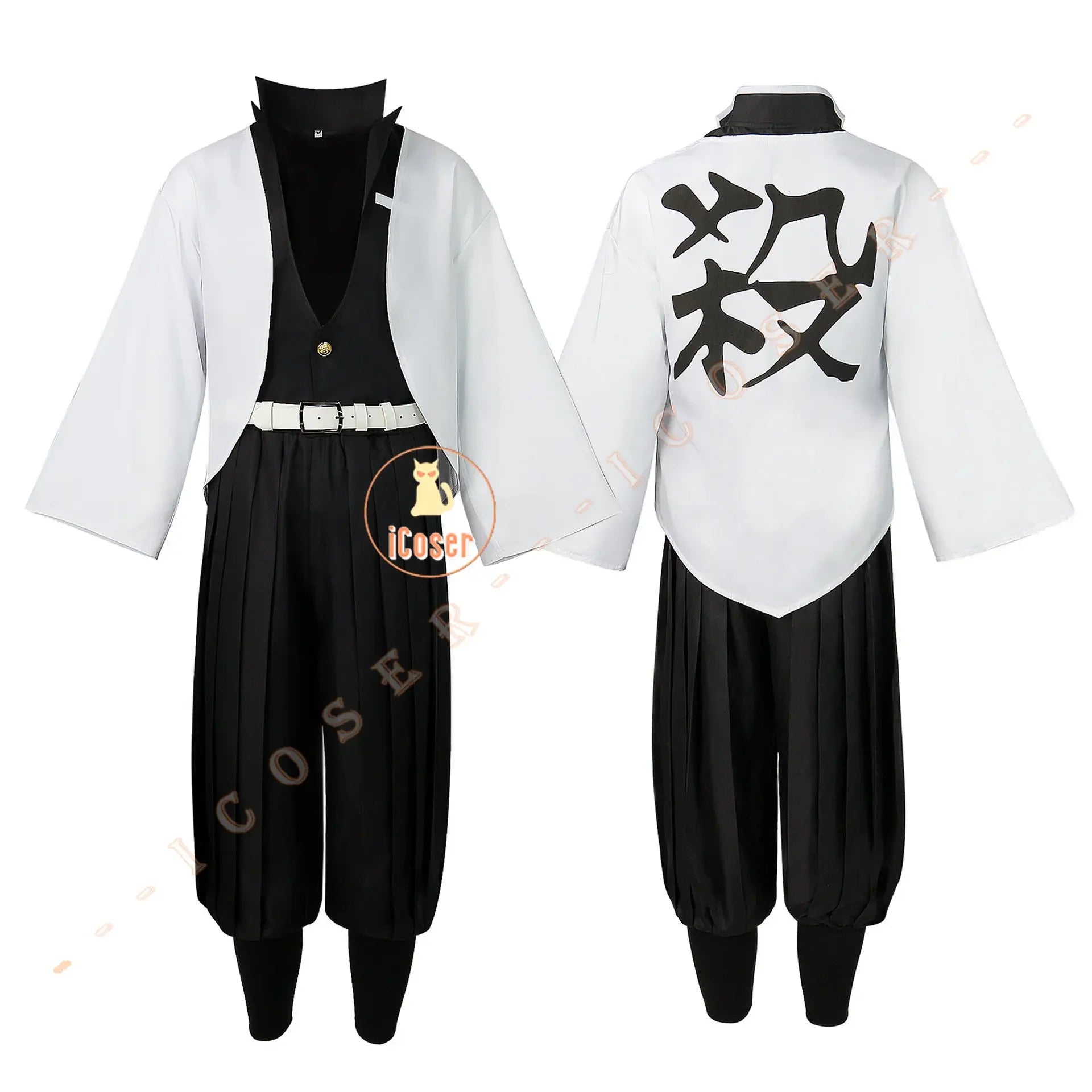 IN STOCK Shinazugawa Sanemi Cosplay Costume Wig Anime Demon Slayer Wind Hashira Uniform Tattoo Stickers Kimetsu No Yaiba Swordsmith Village Arc Halloween Party for Men Women Role Play